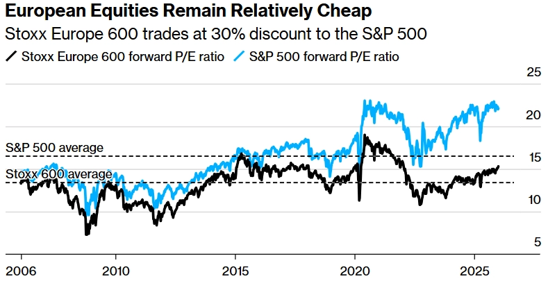 A nejde jenom o absolutní ocenění. Americké akcie jsou drahé i vůči jiným trhům. Akcie na evropských a rozvíjející se trzích se obchodují s nižšími valuacemi a zároveň vyššími dividendovými výnosy. To zvyšuje jejich potenciální atraktivitu. Jakmile se investoři začnou více zajímat o aktiva mimo USA, může se toto naplno projevit.