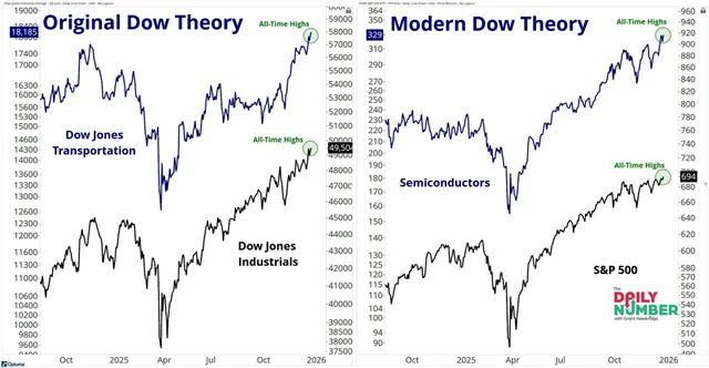 Zkraje roku byl růst potvrzen i podle takzvané Dowovy teorie, kdy maxima index Dow Jones Industrial Average byla následována rekordem indexu Dow Jones Transportation Average. Aneb co se vyrobí, musí se také k zákazníkům dopravit, říká se. Až pak je ekonomika v pořádku, a tedy i růst cen akcií opodstatněný.