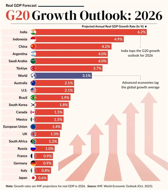 Skupina G20, která zahrnuje největší vyspělé i rozvíjející se ekonomiky světa a vytváří zhruba 85 % globálního hospodářského výkonu, má podle výhledů před sebou další dobrý rok. I když rozdíly v tempech růstu jednotlivých ekonomik jsou značné.