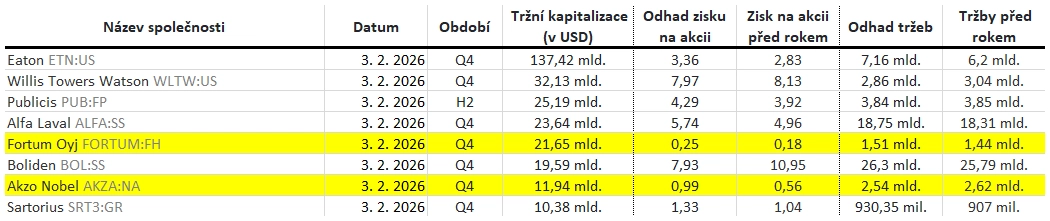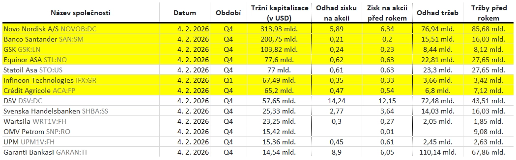 Jaká překvapení přinesly oznámené výsledky evropských firem za 4Q2025?