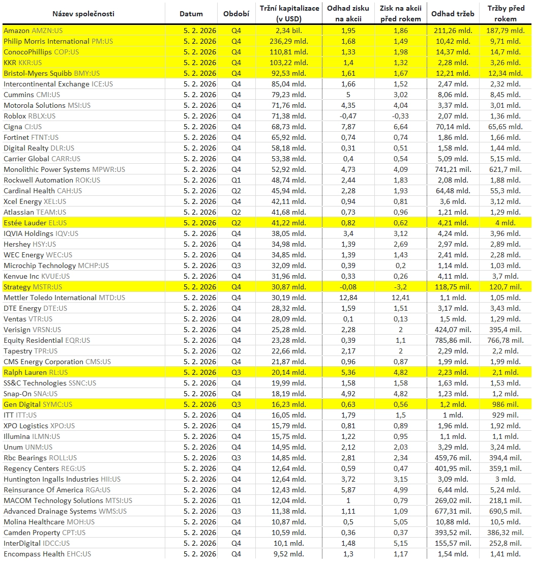 Jaká překvapení přinesly oznámené výsledky amerických firem za 4Q2025?