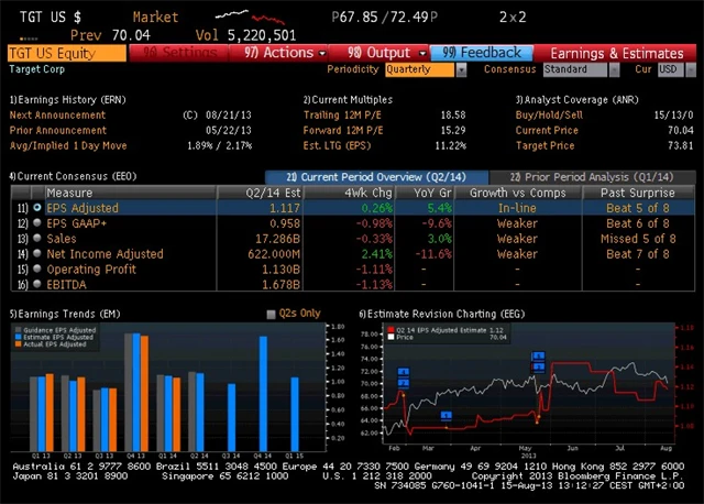 Které světové firmy představí své výsledky hospodaření za druhý kvartál v týdnu od 19. srpna? Přehled očekávaných čísel v odhadech analytiků, jak je sesbírala agentura Bloomberg. (16. 8. 2013)