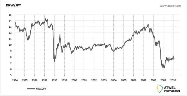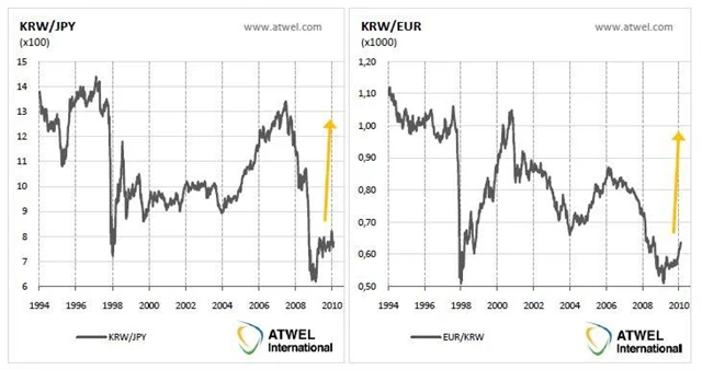 Korea je ekonomika závislá na exportu a proto zde oslabení měny dávalo smysl. Pár USD/KRW během krize znovu vystřelil z úrovní 900 na hodnoty kolem 1500.