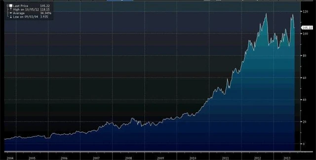 Akcie farmaceutické firmy jsou za sledované období výše o 2 592 %. "Obávám se, že pohyb vzhůru byl urychlen spekulacemi o akvizici. Pokud nepřijde, nevěřím, že by se akcie Alexionu udržely na současných úrovních, a to ani za předpokladu, že má firma portfolio inovativních léčiv," domnívá se Cramer.