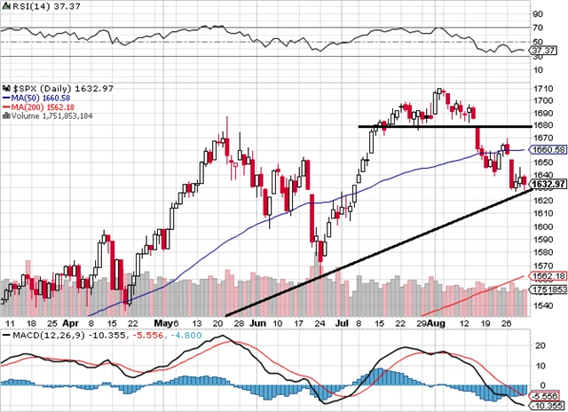 V podstatě by trh mohl korigovat až k 200dennímu klouzavému průměru v zóně 1 560 až 1 570 bodů. Zde byla i červnová minima po oznámení možného zahájení ukončování QE, šlo by navíc o korekci o 8 až 9 %, která je komentátory očekávána a považována za zdravou. Pak by zřejmě následoval návrat k růstu během optimistického závěru roku.