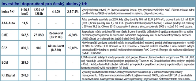 ČS: Dubnová akciová strategie pro české akcie (1. 4. 2010)