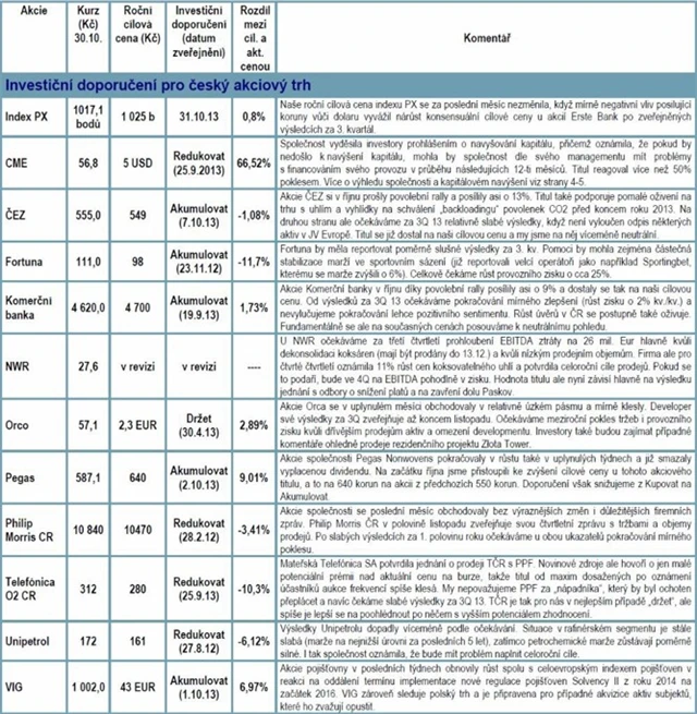 ČS: Listopadová akciová strategie pro české akcie (31. 10. 2013)