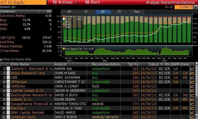 Z nadnárodních generických firem preferuje Actavis například společnost Citigroup. Začala ji pokrývat s cílovou cenou 172 USD za akcii.