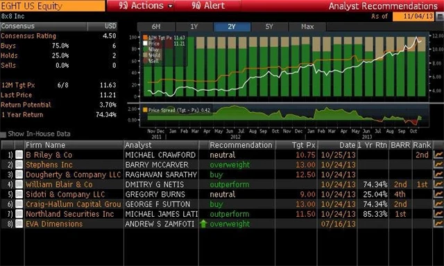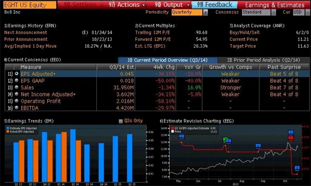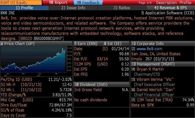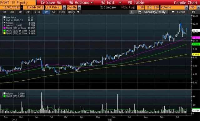 8×8 je telekomunikační firma, která nabízí mimo jiné webové a cloudové služby. Firma se umístila na 23. místě v žebříčku Forbesu ve stovce nejlepších amerických small caps pro rok 2013.
