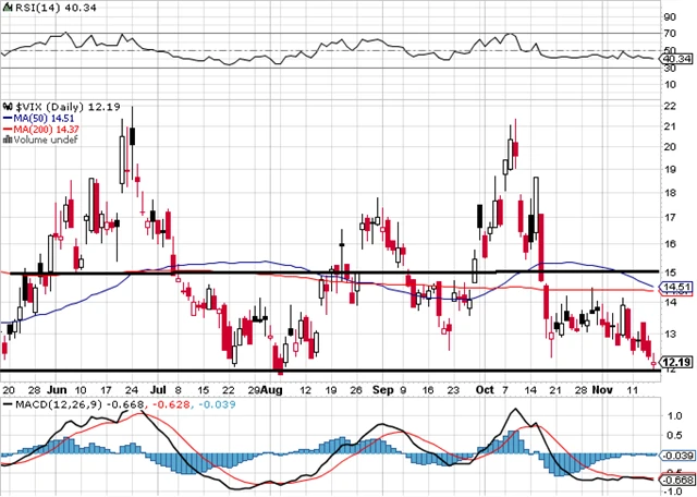 Index volatility VIX se vrátil na velice nízké hodnoty poblíž historických minim. Dokud se u nich bude obchodovat, akciový trh může růst.