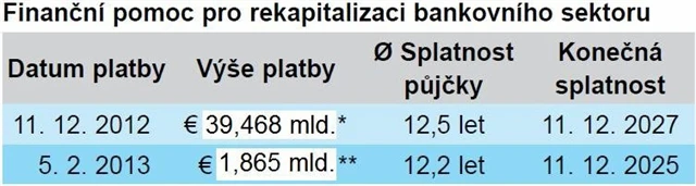 Španělsko v roce 2012 vyčerpalo přes 41 miliard eur z celkových 100 miliard eur určených na pomoc bankovnímu sektoru. Záchranný balíček byl určen španělským bankám, které se po špatných půjčkách v důsledku zejména propadu trhu s nemovitostmi dostaly do vážných problémů.
