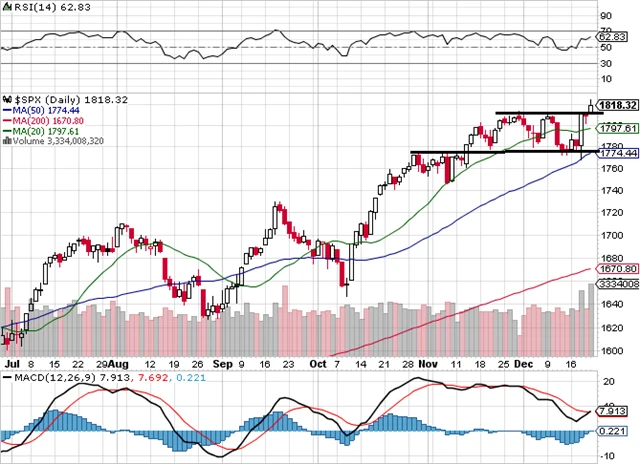 Graf indexu S&P 500 zůstává v býčím nastavení. Na závěr roku možná přijde i Santa Claus rally. Index posílil v prosinci v uplynulých 50 letech v průměru o 1,9 %. Největší zhodnocení zpravidla přichází v posledním týdnu, tedy mezi Vánocemi a Novým rokem. Aktuálně jsou akcie v prosinci díky pátečnímu růstu 0,5 % v plusu. Příští týden se aktuálním tématem stane také "lednový efekt".