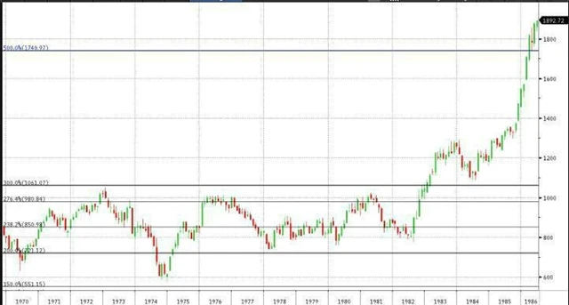 Některé korekce v 60. a 70. letech přišly po dosažení úrovní 2,764 a 3.