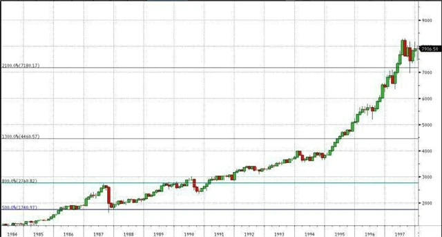 Velký tržní krach v roce 1987 nastal po dosažení Fibonacciho úrovně 8 (chybělo méně než procento) a klesl k 5. Medvědí trh v letech 2001 až 2003 přišel po dosažení Fibonacciho 34 a poslal trh zpět k 21.
