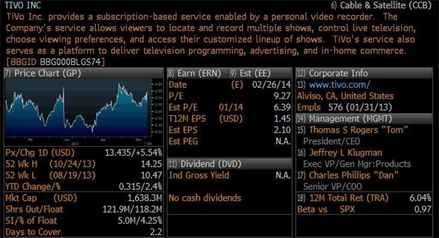 Argumenty mluvící v prospěch TiVo? Počet uživatelů stoupá, drží více než miliardu dolarů v hotovosti, její akcie se v roce 2013 příliš nehýbaly, vydělávala loni více než v předešlém roce a má novou, velmi slibnou technologii.