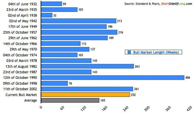 Současný býčí trh trvá již 252 týdnů. Podle statistik je to čtvrtý nejstarší býčí trh v historii.