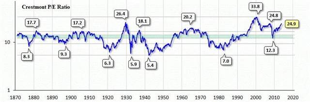 Lze tak předpokládat, že trh už má většinu zisků za sebou. Takto dlouhý růst zažil za posledních 100 let jen čtyřikrát. **Vysoké je i ocenění akcií - ukazatel Crestmont P/E (bere v úvahu vztah zisků a vývoje HDP) byl vyšší jen před prasknutím bubliny v roce 2000 a před zhroucením burzy v roce 1929. To sice neznamená, že trh musí být v bublině, je ale určitě hodně předražený.