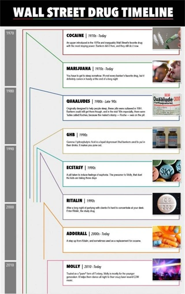Od doby, kdy na Wall Street existuje stres, používají se tam drogy. Nejdivočejší to bylo v 70. letech 20. století, kdy na popularitě nabral kokain. Podívejte se, jaká je historie drog na americké burze od 70. let do současnosti.