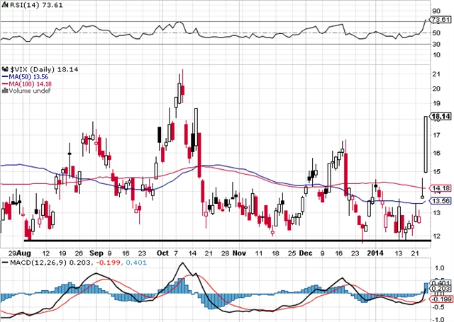 Index volatility VIX za poslední čtyři obchodní dny posílil z hodnot blízko svých minim o 45 %. Jen v pátek přidal 31 % a vylétl nad své dlouhodobé rozpětí. Takto rychlá, strašidelná odskočení se brzy měnívají v nákupní příležitosti.