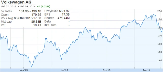 Největší evropská automobilka překonala General Motors a měřeno tržbami je je globální dvojkou za Toyotou. Pro Volkswagen oživení v Evropě spolu s rostoucí globální poptávkou po jeho portfoliu značek znamená pokračující podporu firemních tržeb a zisků. Titul by mohlo dostat pod tlak velké ochlazení v Evropě, Číně nebo na automobilovém trhu v USA. Během posledního měsíce tyto obavy vyvolaly pokles ceny akcií o téměř 10 %.