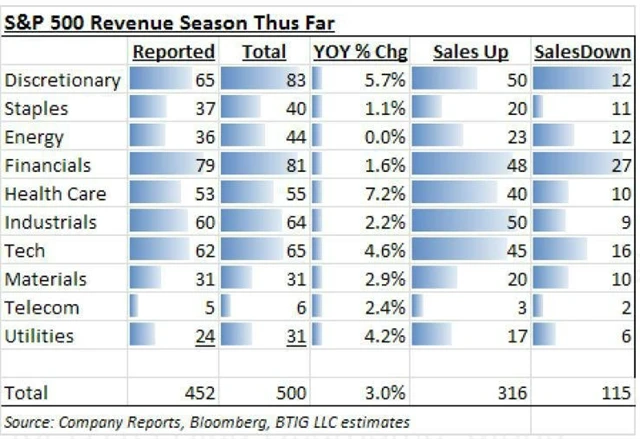 Greenhaus také upozorňuje na to, že provozní marže jsou solidní a v některých sektorech stále rostou. "Celkově zůstaly marže firem z indexu S&P 500 stabilní na zhruba 9,6 %. K tomu pomohl především sektor informačních technologií, kde se marže zvyšovaly. U energetických firem, v průmyslu nebo zdravotnictví šly marže naopak dolů," říká Greenhaus. Energetický sektor je na tom nejhůře, i co se týče růstu tržeb.