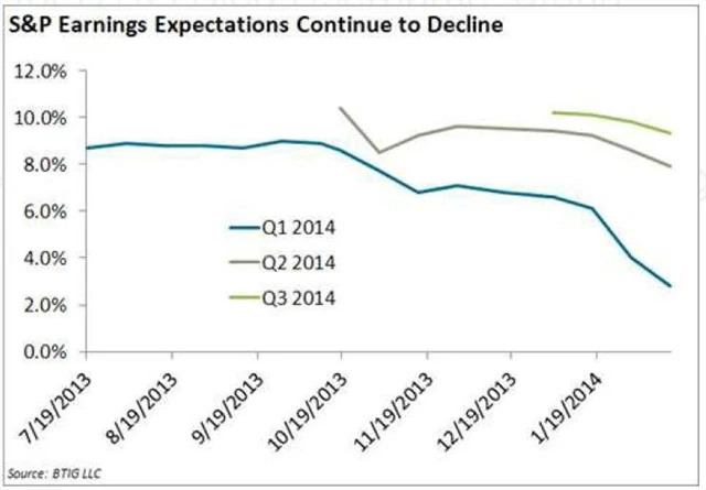 Většina firem z indexu S&P 500 už reportovala výsledky za 4Q2013. Podle Dana Greenhause z BTIG Research přitom 66 % firem překonalo odhady zisků na akcii a růst zisků na akcii byl meziročně přes 9 %. To je mnohem lepší než historický průměr.
