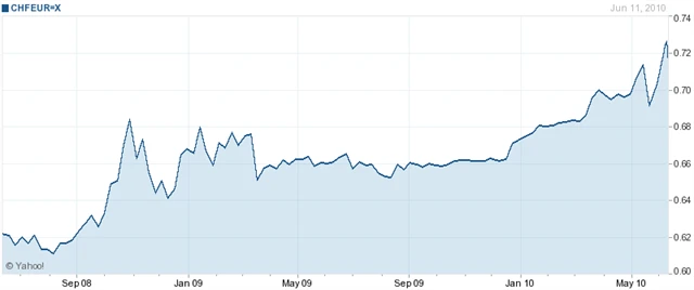 Frank je již dnes dobrou náhražkou pro německou ekonomiku. 20 procent švýcarského exportu míří právě do Německa. Němci přitom v rámci svého vývozu samy těží ze slabého eura, poptávka po importu ze Švýcarska se bude zvyšovat. To bude podporovat švýcarskou obchodní bilanci, a tím i sílu franku. Navíc navyšování rezerv Švýcarské národní banky, ke kterému došlo v posledním roce, mělo za výsledek to, že tato banka drží zahraniční aktiva ve větší míře než kterákoli jiná evropská instituce. To podporuje důvěru ve frank, podobně jako dříve německé rezervy podporovaly marku, a zvyšuje to potenciální vliv Švýcarské národní banky na mezinárodních finančních trzích.