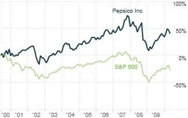 Navíc, růst trhů mimo Spojené státy, tvořících 50 procent celkových tržeb firmy, je markantní a společnosti pomůže na úplný vrchol. Investoři by měli být trpěliví. Vysoký výkon firmy Pepsico proti hlavním indexům se neobjeví každé čtvrtletí, ale až po pěti nebo deseti letech.