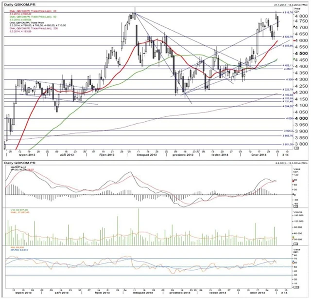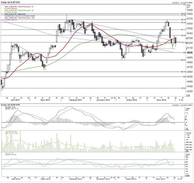 Komerční banka a ČEZ: České blue chips pohledem technické analýzy (4. 3. 2014)