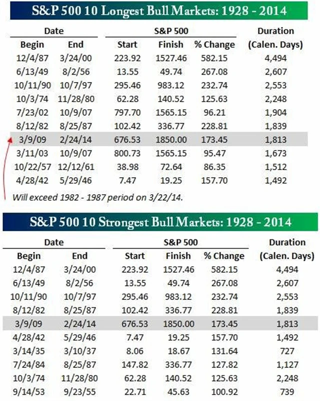 Index S&P 500 by musel bez medvědí přestávky (poklesu alespoň o 20 %) růst do 28. června 202, aby překonal nejdelší býčí trh historie z let 1987 až 2000. Nejsilnější růst (vyjádřený v procentech) by vyžadoval posílení indexu o dalších zhruba 150 % na 4 620 bodů.