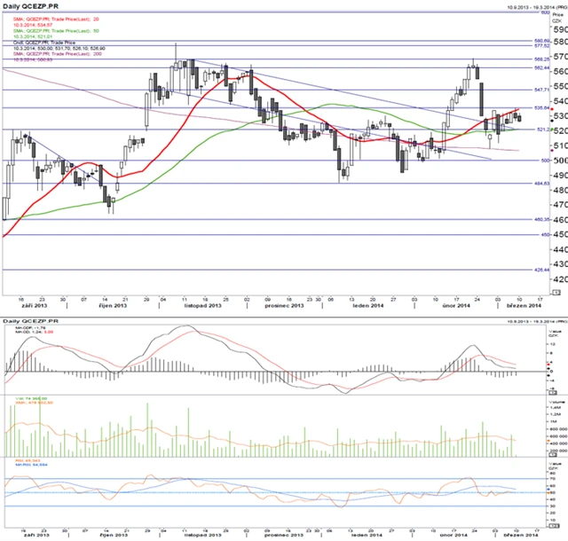Komerční banka a ČEZ: České blue chips pohledem technické analýzy (11. 3. 2014)