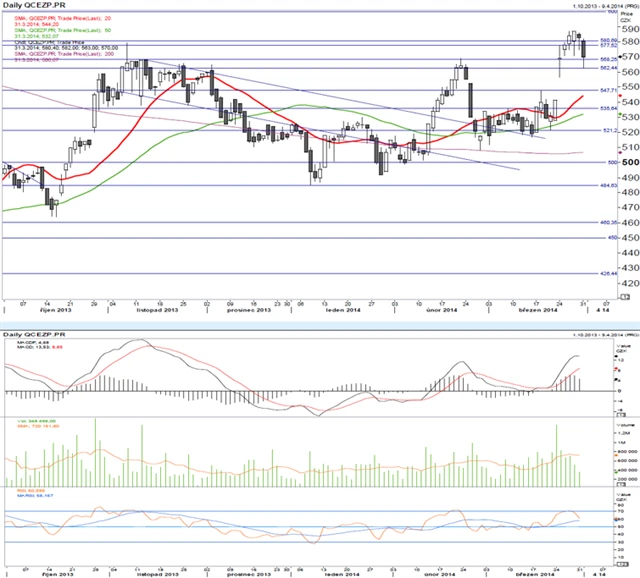 Komerční banka a ČEZ: České blue chips pohledem technické analýzy (1. 4. 2014)