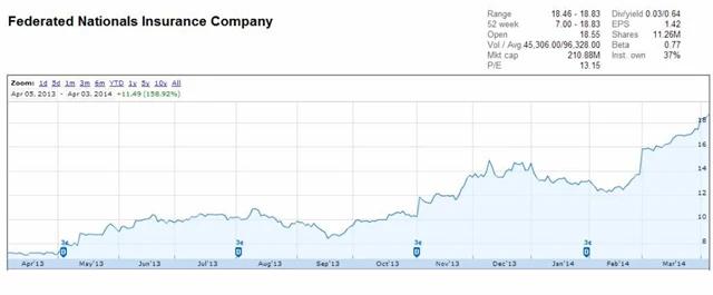 Jde o další malou pojišťovnu, která aktuálně vykazuje vysoké zisky. Specializuje se taktéž na pojištění domácností a na pojištění práce. Tržby i zisky byly v posledním čtvrtletí výrazně vyšší, na úrovni zisků překonala firma odhady analytiků o 84 %. Analytici zvyšují na společnost svá doporučení. Firma dostala od Navalliera nejvyšší hodnocení loni v červnu a vzhledem k výrazně lepším fundamentům má nyní doporučení "strong buy".