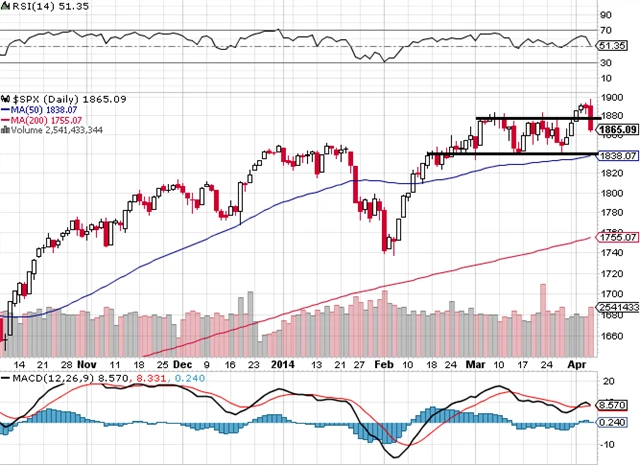 Nižší support je v zóně 1 830 až 1 820, kde je současně 50denní klouzavý průměr. Nejbližší rezistence nad 1 880 je páteční maximum okolo 1 897.