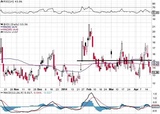 Index volatility VIX klesal celý týden. Vrátil se do bezpečného pásma pod 15, což je pro akciový trh pozitivní signál.