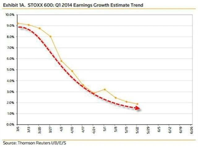 Odhady růstu zisků firem z celoevropského indexu DJ EuroStoxx 600 klesly z více než 9 % v březnu na méně než 2 % koncem května.