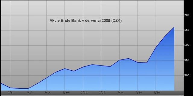 Erste Bank se nyní obchoduje v objemech téměř vyšších než ČEZ, což před několika lety bylo nemyslitelné. Investoři tak vyhnali cenu z původních 480 kč v červnu na 660 kč v srpnu, což je opravdu úctyhodný nárůst. Někteří analytici toto považuji za známku toho, aby investor vyklidil pole a posbíral zisky, dokud ještě může. Jiní to přisuzují zdravému bankovnímu sektoru v české kotlině a prorokují další nárůst.