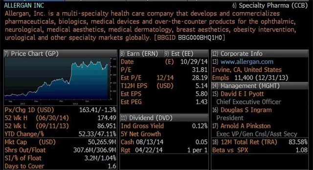 Společnost je předmětem spekulací ohledně akvizice. Neusíná na vavřínech - omezuje náklady, aby zajistila pokračující silné zisky. Allergan může být atraktivní sázkou v případě akvizice, může se totiž najít firma, která za ni zaplatí vysokou prémii.