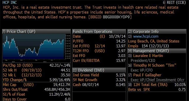 HCP je strukturována jako REIT (nemovitostní fond), zaměřuje se převážně na zdravotnické budovy. Analytik Dan Burrows nedávno poznamenal, že HCP má velmi nízkou betu, což znamená, že se její cena nepohybuje spolu s trhem a charakterizuje ji nízká volatilita, a to dokonce i tehdy, když S&P 500 zažívá velké výkyvy.