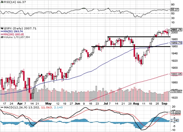 Zavírací ceny nad 2 000 bodů potvrdily změnu grafu na býčí. Negativním se výhled stane při zavírací ceně pod 1 985. Nejbližší support je na červencových maximech v zóně 1 980 až 1 990 bodů.