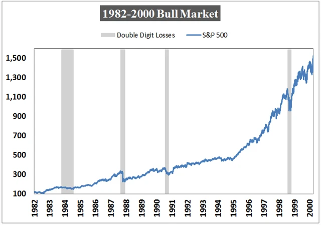 17-18% roční výnosy v 80. a 90. letech byly úžasné, tato perioda přitom zahrnovala období s dvojcifernou mírou nezaměstnanosti, dvě recese, válku v Perském zálivu, tržní propad v roce 1987, krach hedgeového fondu Long-Term Capital Management a krizi mladých trhů.