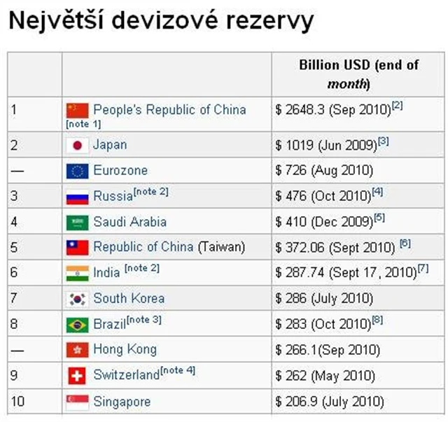 Čína je totiž největším držitelem světových dolarových rezerv. Ekonomický vliv Číny roste, a tak se ozývají hlasy, že novou světovou rezervní měnou by měl být čínský jüan, který však dosud není volně směnitelný.