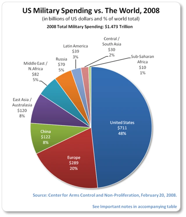 4. USA vládnou světu vojensky. Výdaje na zbrojení jsou ve Spojených státech stále obrovské. Pokud by je Čína chtěla dohonit, musela by své výdaje na zbrojení přibližně zešestinásobit.