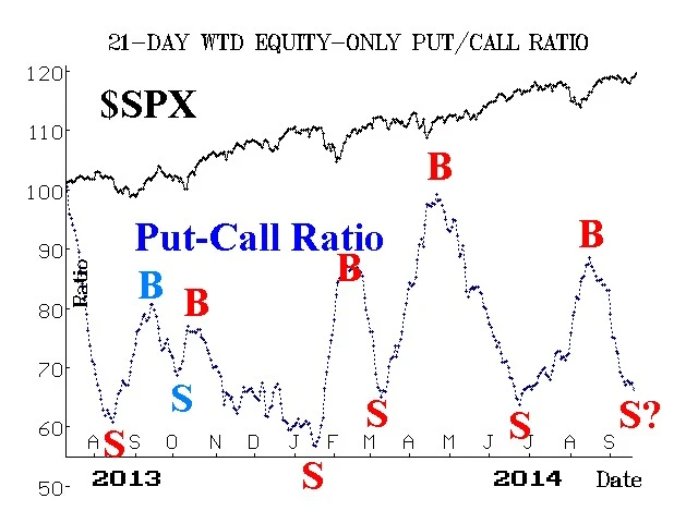 Put/call poměry na trhu s opcemi se posunuly do pásma, které naznačuje pro akcie negativní výhled. U váženého ratia je to méně jednoznačné než u standardního. Šíře trhu (poměr počtu posilujících titulů vůči počtu oslabujících titulů) ale ukazuje, že se na růstu podílí stále více akcií, což je nákupní signál.