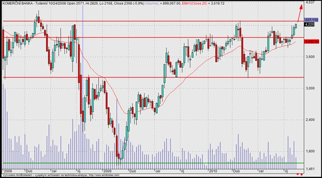 Komerční banka výrazně překonala veškerá očekávání trhu na všech položkách. Bance se nadále daří získávat nová depozita, která může investovat, opravné položky k nespláceným úvěrům výrazně klesly a na trhu se objevily spekulace o výrazném navýšení dividendy. Očekáváme, že dividenda výrazně přesáhne 200 Kč. Byl potvrzen pozitivní výhled na rok 2011.