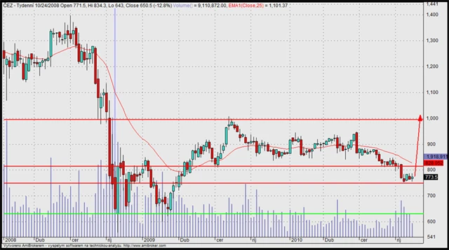 My očekáváme, že v následujících kvartálech budou zveřejněny dobré výsledky, které by měly posunout kurz výrazně nad 800 Kč, v případě poklesu k 700 Kč lze uvažovat o nákupu.