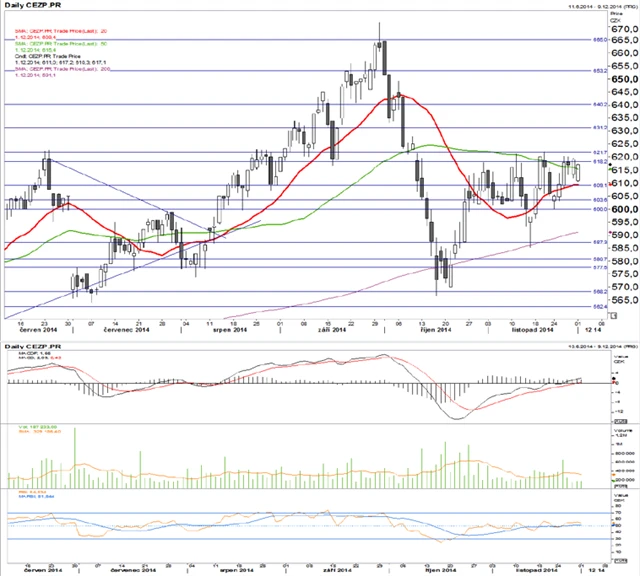 Komerční banka a ČEZ: České blue chips pohledem technické analýzy (2. 12. 2014)