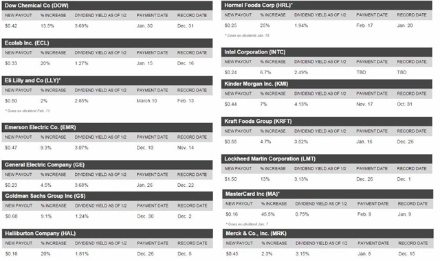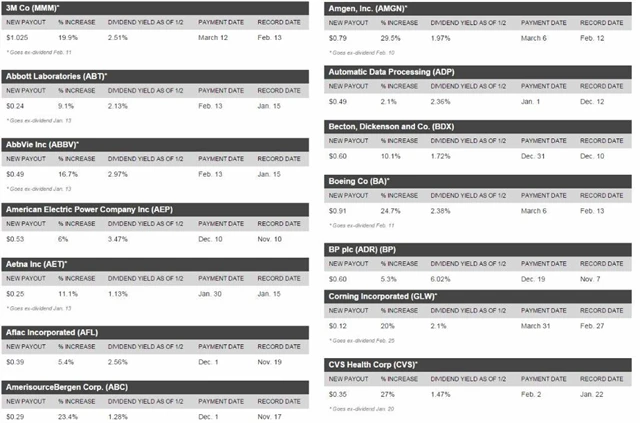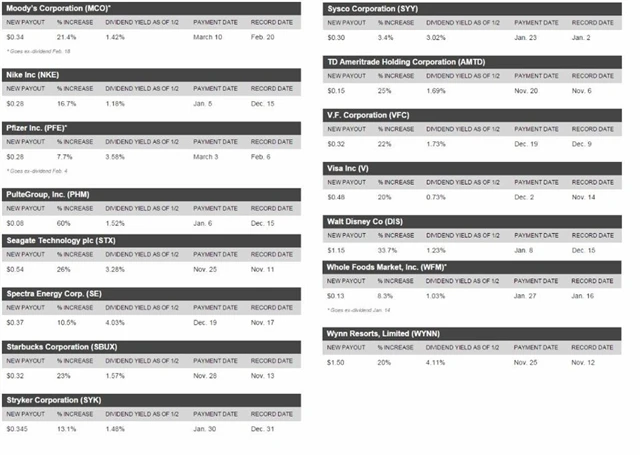 Následující seznam skrývá 45 společností, které zvýšily dividendu. Některé z nich lze ještě "s dividendou" i koupit.