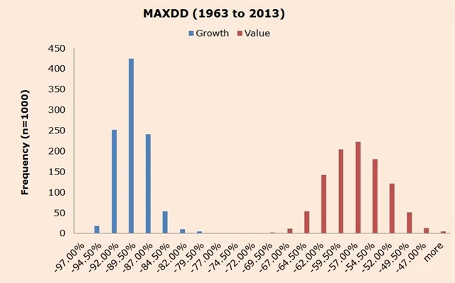 U všech akciových strategií se volatilitě a ztrátám, ze kterých se většině investorů zatmí před očima, nevyhnete. Akciové investování není pro slabé nátury. Nejde však ani nasimulovat scénář, kde by diverzifikované portfolio 30 drahých akcií mohlo překonat nejhůře výkonné portfolio 30 podhodnocených akcií.