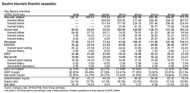 Fortuna vstupuje do relativně slabého období 2011-2012, když start loterijního projektu (konec 1. pololetí 2011) bude mít negativní vliv na nákladovou stranu (loterijní projekt bude v prvních letech ztrátový z důvodu vysokých marketingových nákladů na získání části trhu). Navíc nový loterijní zákon, který by měl platit od roku 2012 v České republice, by měl obsahovat i sjednocení daní z výtěžku na 20 % (Fortuna v současné době platí přibližně 15 %), což by mělo mít negativní vliv na čistý zisk Fortuny ve výši přibližně 2,5 mil. EUR.